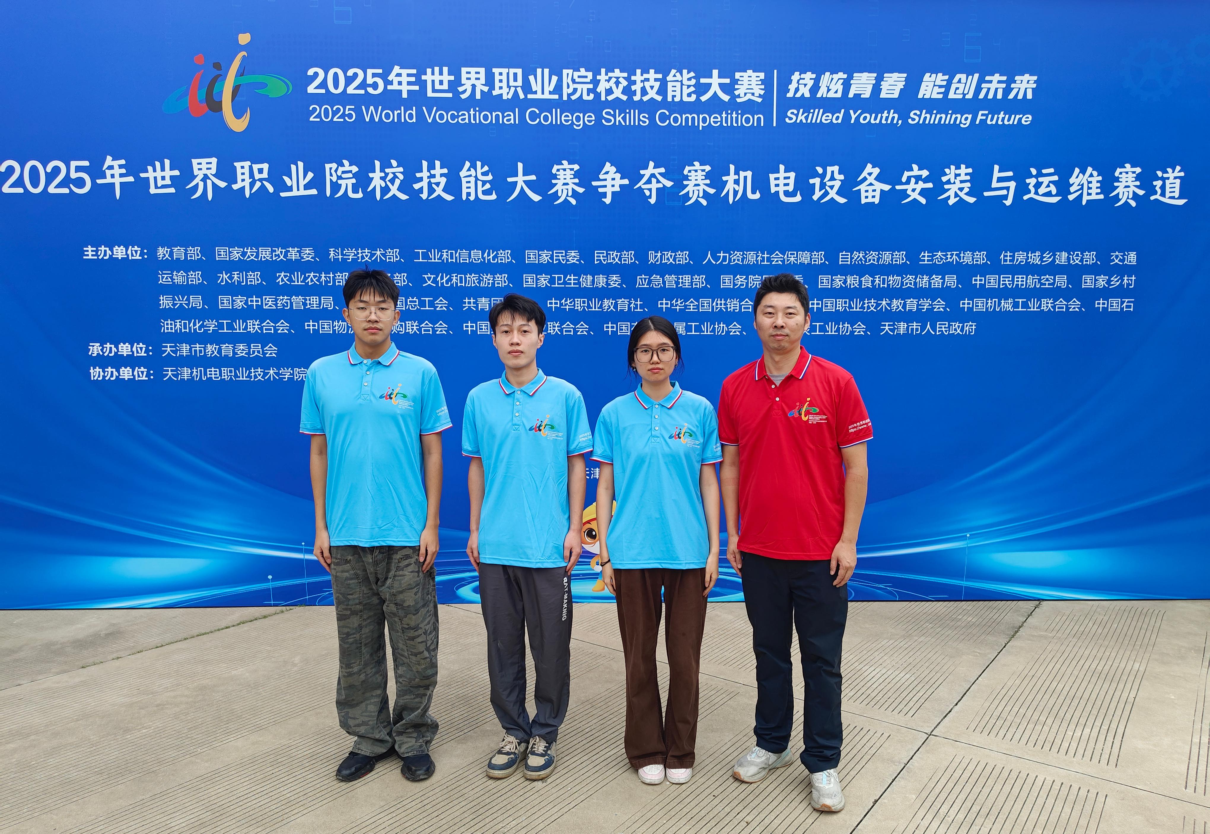 机电设备安装与运维参赛团队,克服临时调换赛道,选手专业不对口的困难,在有限的时间内完成设备改造、选手技能培训和展示演练,在校领导的关心协调和组委会专家的指导下,师生共同努力,将银奖收入囊中。